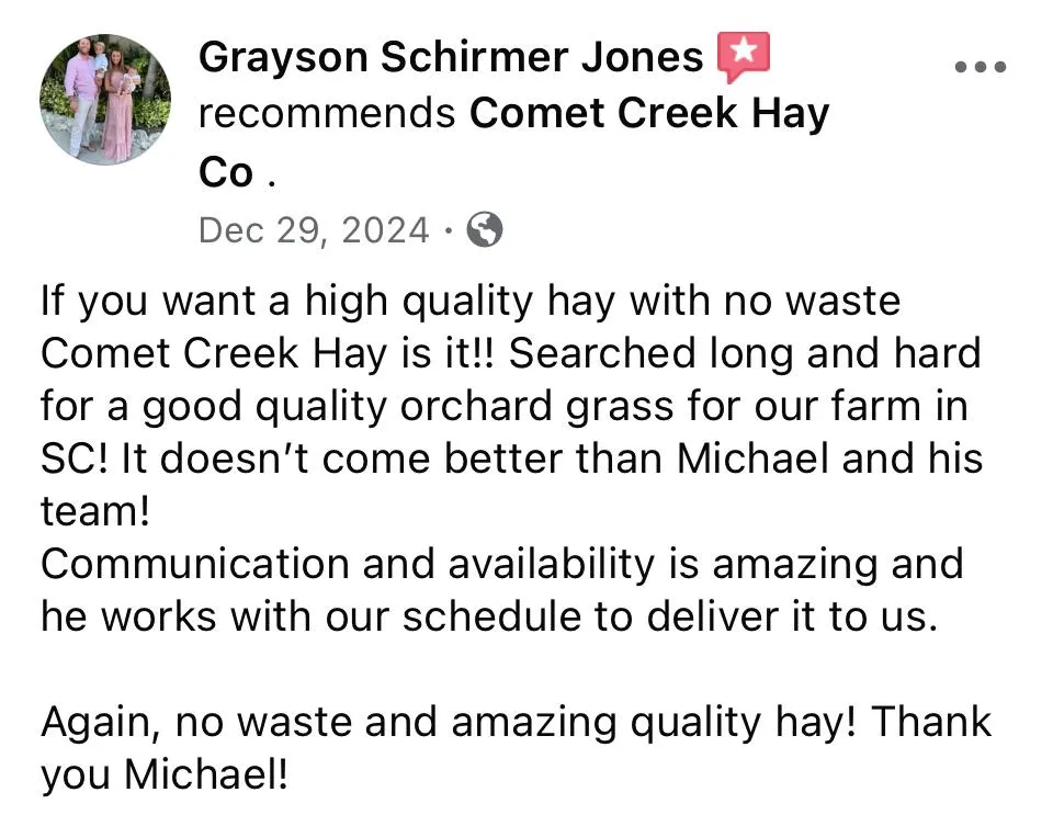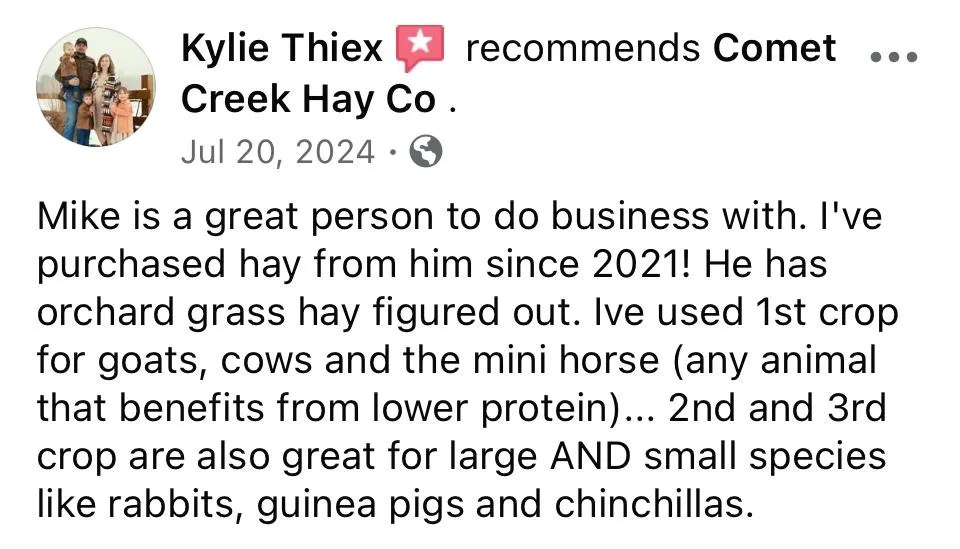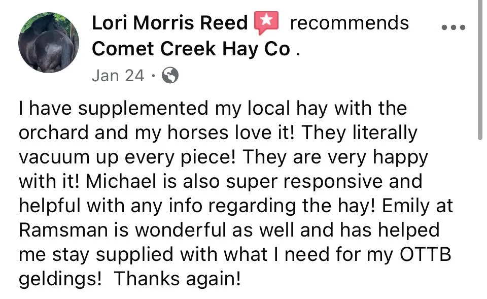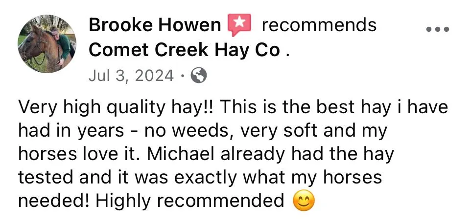 Comet Creek Hay offers full and half-load hay deliveries, depending on what your operation needs. We work with experienced drivers to make sure your hay shows up when and where it should. For added convenience, we can arrange drop-and-pick options with pup trailers if needed. Just reach out and we’ll let you know what’s available in your area — we’re happy to work with you.